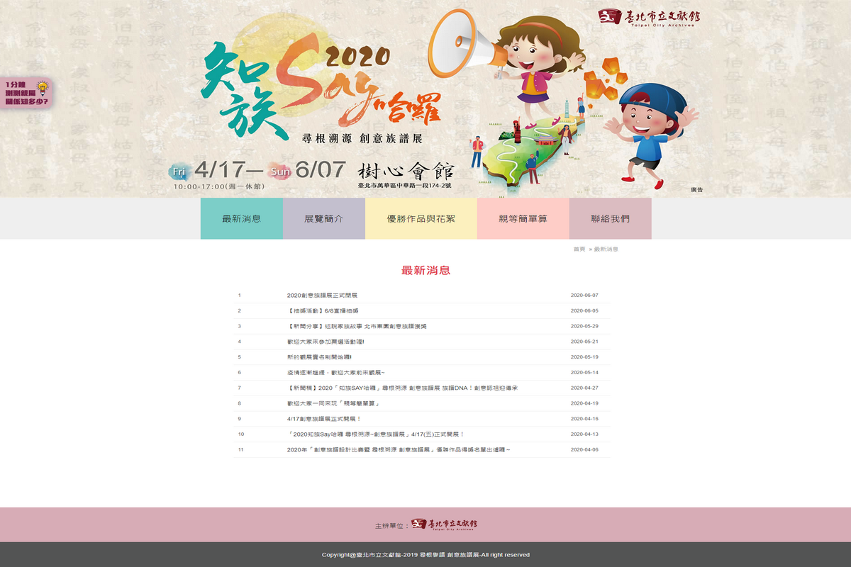 臺北市立文獻館辦理創意族譜比賽活動已連續15年,歷次舉辦族譜設計比賽活動,皆獲熱烈迴響。本活動主要目....